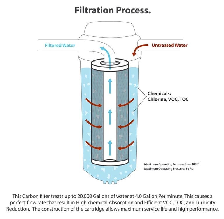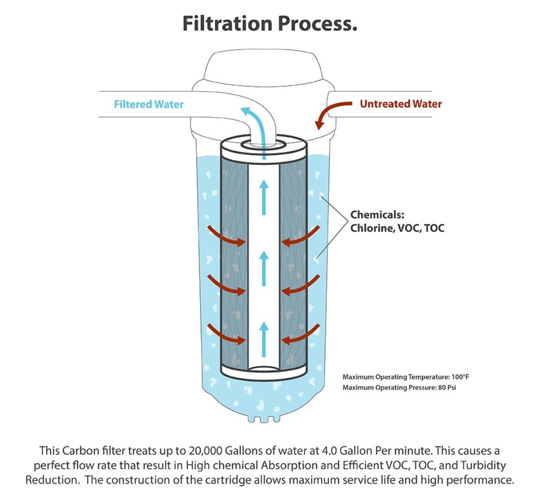Karbon aktif berfungsi sebagai media penyaring yang menghilangkan rasa, warna, dan aroma air. Material ini umumnya berasal dari tempurung kelapa yang direndam dengan larutan asam dan basa hingga memiliki pori-pori sangat halus. Cara kerjanya adalah dengan menyerap zat kimia dan kotoran yang tidak terlihat. Hasilnya, air menjadi lebih jernih dan tidak berbau. Karena itu, karbon aktif sering digunakan sebagai tahap akhir dalam sistem filter air.